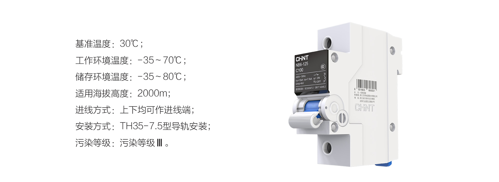 正泰泰極斷路器NB6-125適用于交流50Hz,額定電壓至230V或400V,額定電流至125A的線路中,起過載和短路保護作用,亦可在正常情況下作為線路的不頻繁通斷之用。
